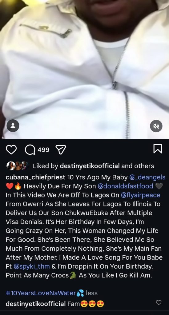 Nigerian celebrity barman and socialite, Cubana Chief Priest, has begun counting down to his wife’s birthday, expressing deep love and appreciation for her unwavering support over the years.