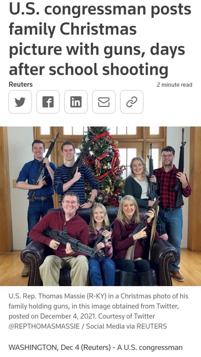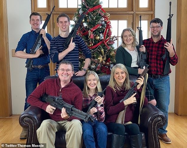 A Kentucky congressman caused widespread outrage after the Republican posted a Christmas photo that showed him and seven members of his family brandishing large assault rifles, just days after a high school massacre in Michigan.