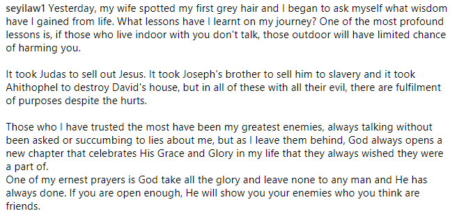 Seyi Law has shared some words of wisdom with his followers based on his experience.