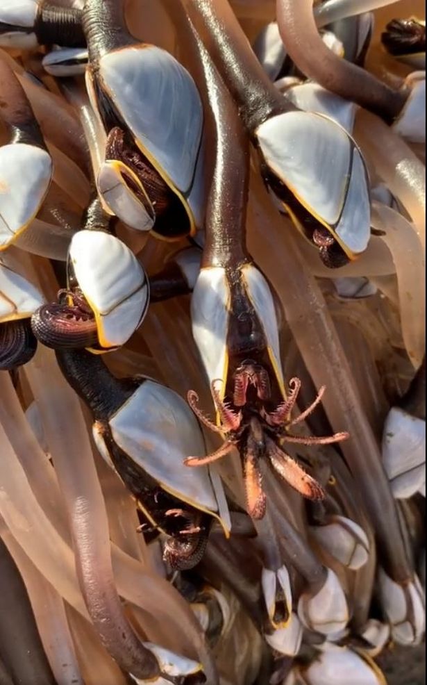 Martyn, 47, said his son Daniel searched on Google for answers and they soon realised the astonishing creatures were Goosenecked Barnacles, a rare specimen considered a delicacy, particularly in Portugal and Spain where they are known as percebes.