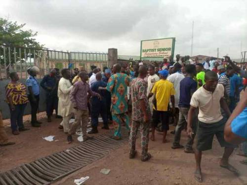 Christians and Muslims not pleased with the situation however went into a clash at one of the affected schools, Baptist Secondary School on Wednesday as they pelted themselves with stones and plastic chairs with security operatives struggling to control the situation.