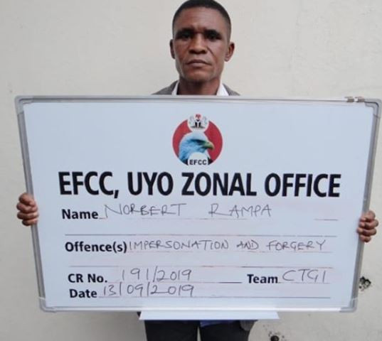Operatives of the Uyo Zonal Office of the Economic and Financial Crimes Commission, EFCC, have arrested three men in Uyo the Akwa Ibom State Capital, for allegedly impersonating operatives of both the Economic and financial Crimes Commission, EFCC and the Independent Corrupt Practices and Other Related Offences Commission, ICPC. The arrested suspects are Norbert Rampa, 51; Patrick Essien, 50; and Gabriel Daniel, 32.