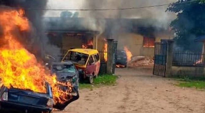 According to residents of the area, the hoodlums, who came in large numbers, stormed the police station, began shooting sporadically and even threw explosive devices and petrol bombs into the police building before gaining entrance, burning part of the building.