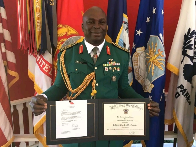 A Nigerian Army officer, Charles Nengite, a colonel, at the weekend, beat 380 other postgraduate students to the top position at the U.S. War College (USAWC), Carlisle, Pennsylvania.