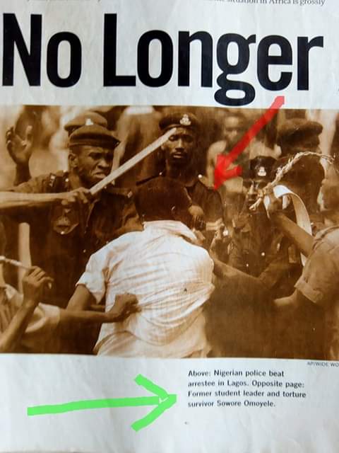 Below is the trending picture of seasoned human right activist and Publisher of Saharareporters, who is also the presidential candidate of the African Action Congress in the Nigeria 2019 General Election, Omoyele Sowore who has been held in detention since 50 days ago and recently charged for what is described laughable by pundits and CSOs. The picture which emerged from a page of an old Amnesty International Publication shows Sowore being beaten by men of the Nigeria Police force during a protest against Abacha’s junta.