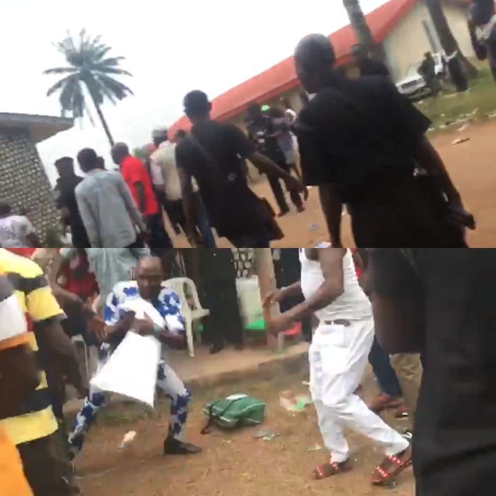 Thugs belonging to one of the major parties in Nigeria just attacked INEC officials destroyed all their materials and prevented them from bringing the election results for collation.