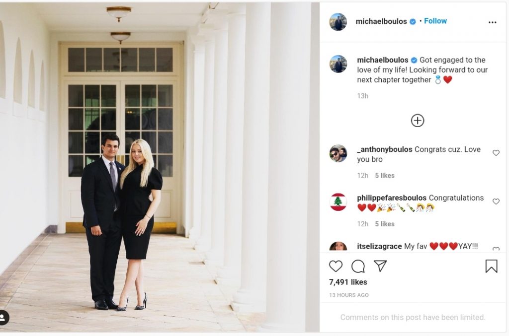 “It has been an honor to celebrate many milestones, historic occasions and create memories with my family here at the White House, none more special than my engagement to my amazing fiancé @MichaelZBoulos! Feeling blessed and excited for the next chapter!” she wrote.
