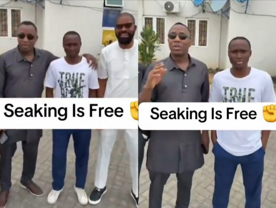 In a recent video that surfaced online, Seaking was seen in the company of Sowore and lawyer, Adeyanju amongst others who announced his released.