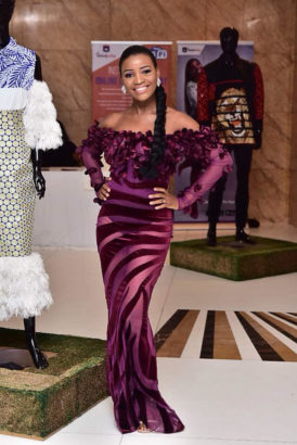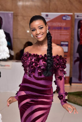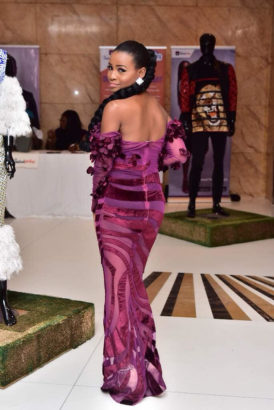 Actress Tomi Odunsi showed off her amazing and tinny body in a purple off the shoulder see through dress for the just concluded Eloy Awards.