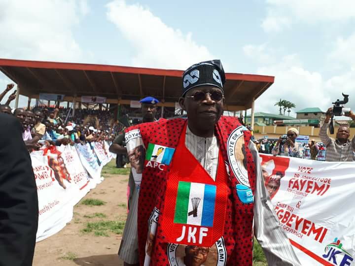 Asiwaju Bola Ahmed Tinubu, Chief Bisi Akande, Gov. Rauf Aregbesola and other APC leaders storms Ekiti for the party’s mega rally in support of Kayode Fayemi, the APC Candidate for the July 14 Guber polls.