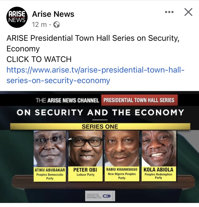 Tinubu Pulls Out Of Arise TV Presidential Debate