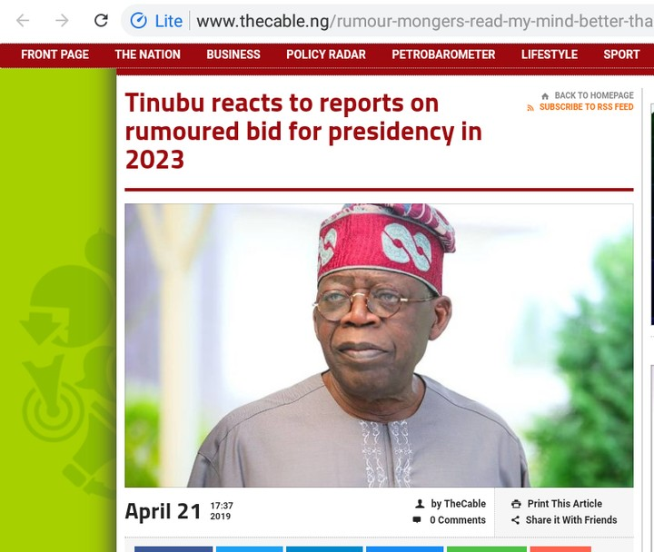 “The peddlers of these rumors have arrogated to themselves the preternatural ability to read Asiwaju’s mind more than he himself can know it. They also seem to have acquired the unique gift of bending time so that 2023 appears before we even reach the midway point of 2019. If these people would only enlist their uncanny talents in the service of the nation instead of in the service of political intrigue and gossip mongering our country would be much the better.
