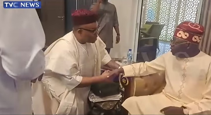 The President-elect, Bola Ahmed Tinubu has received Senator-elect, Godswill Akpabio at his Asokoro residence in Abuja on Tuesday.