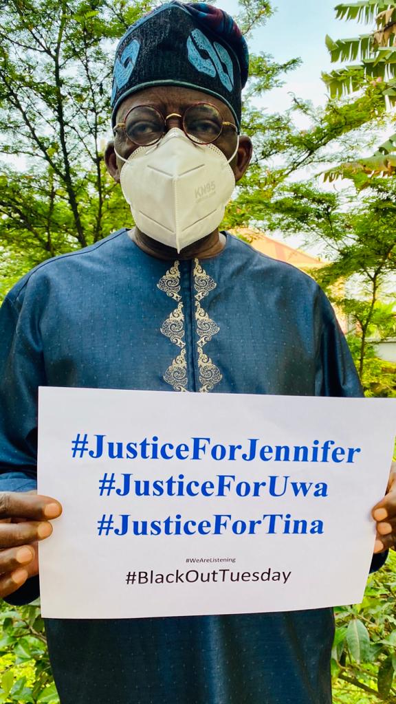 Asiwaju Ahmed bola tinubu, leader of Apc demands justice for tina uwa Jeniifer