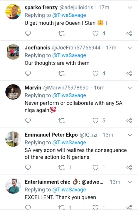 Mavin first lady, Tiwa Savage reacted to the xenophobic attacks carried out by South Africans against foreigners mostly Nigerians in their country, which has led to an outrage on social media and the media.