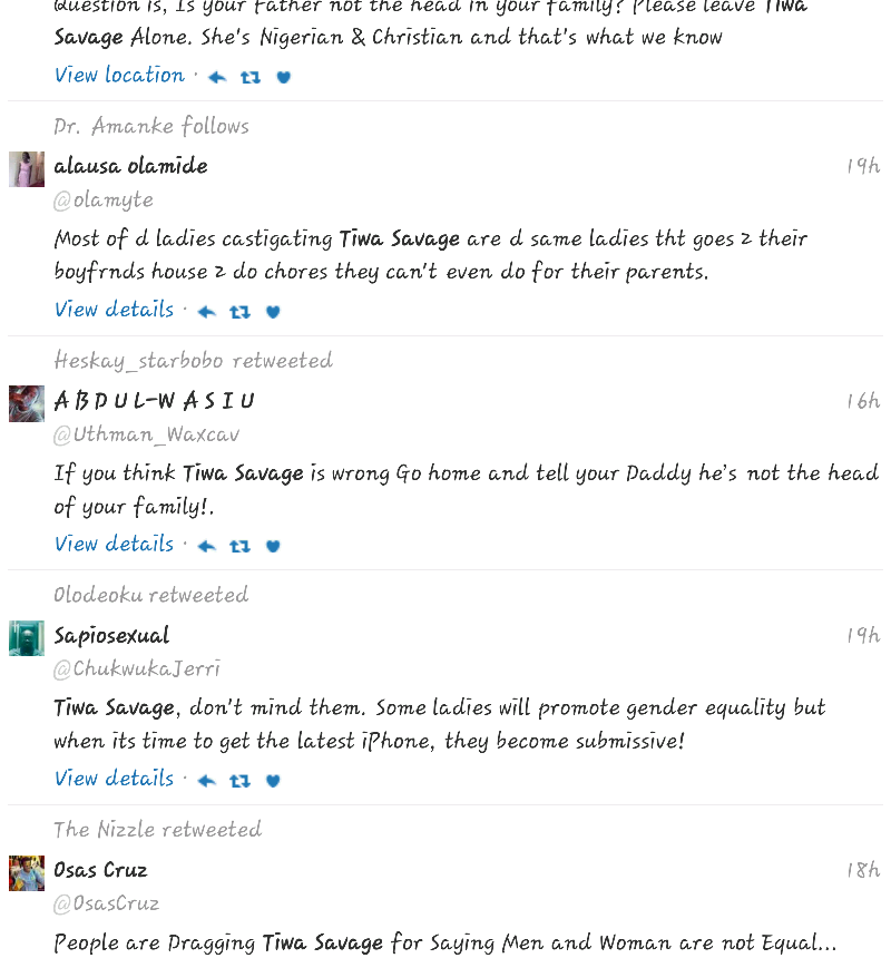 She just dropped her SugarCane EP is presently on media rounds to promote the project. While on an interview at Beat 99.9 FM , part of the topical issues discussed was gender equality. As opposed to taking the feminist stance just as expected, Tiwa rather chose to be on the other side of the divide. Her view caused conflicting responses from twitter users.