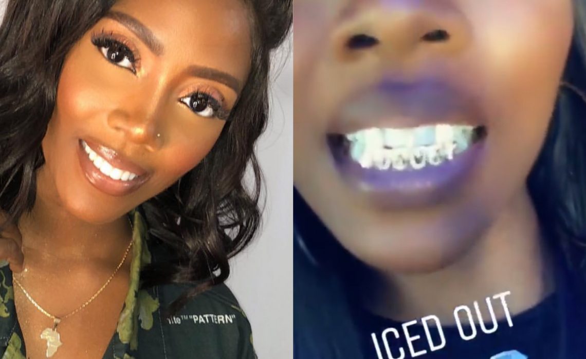 Nigerian songstress,Tiwa Savage has shown off her new acquisition ,an expensive set of iced out grills.