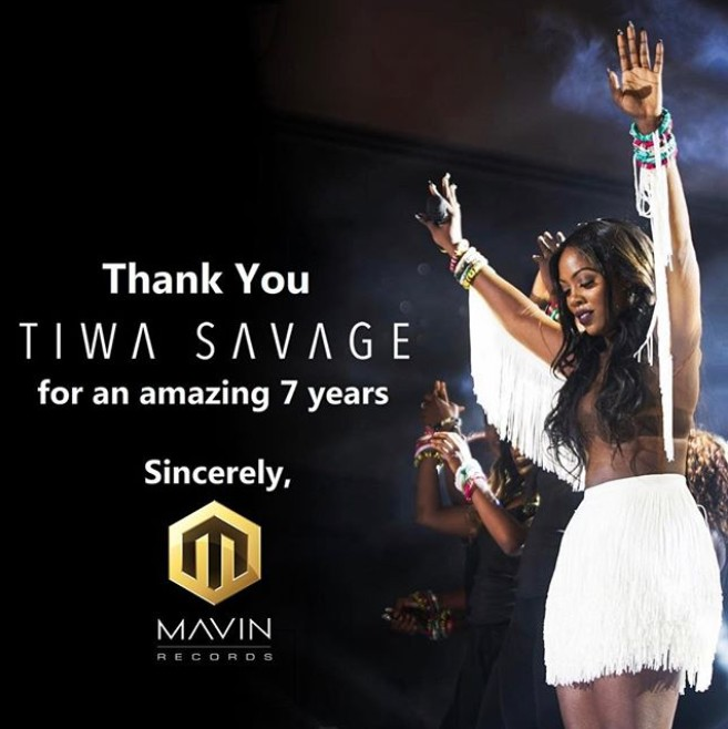 Mavin Records first lady, Tiwa Savage has gracefully taken her leave after 7 years.