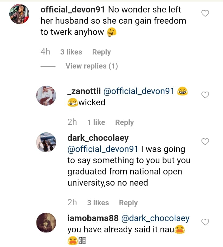 At least she dae spotlight n u use ur data watch her…all those criticizing go get something to do. Bitches!!! @official_devon91