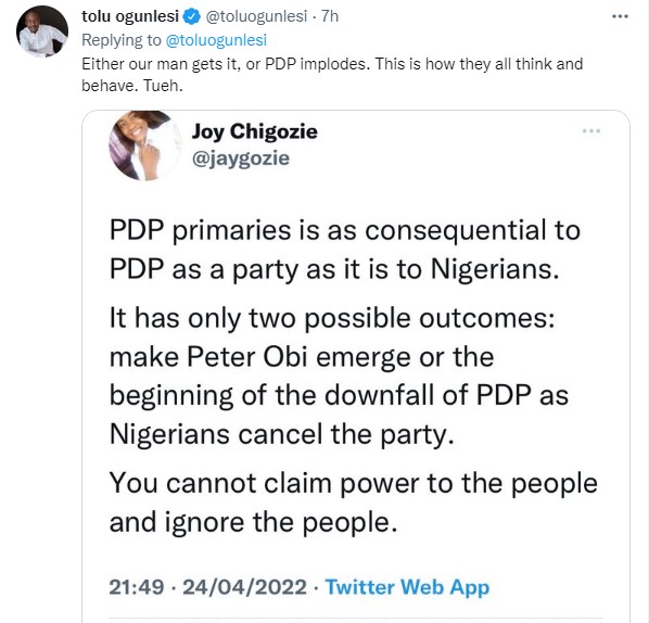Either our man gets it, or PDP implodes. This is how they all think and behave. Tueh.