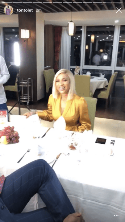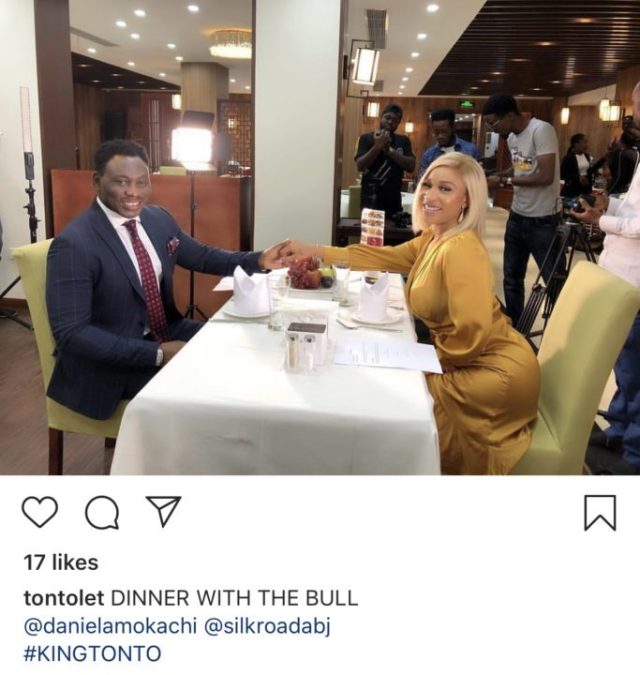 Tonto Dikeh was all shades of beautiful as she had dinner with Daniel Amokachi, a former Nigerian international as spotted in photos she shared.The actress captioned the photo  “Dinner with @danielamokachi”, and with the cameramen in the background, we think she is filming for her new reality show.