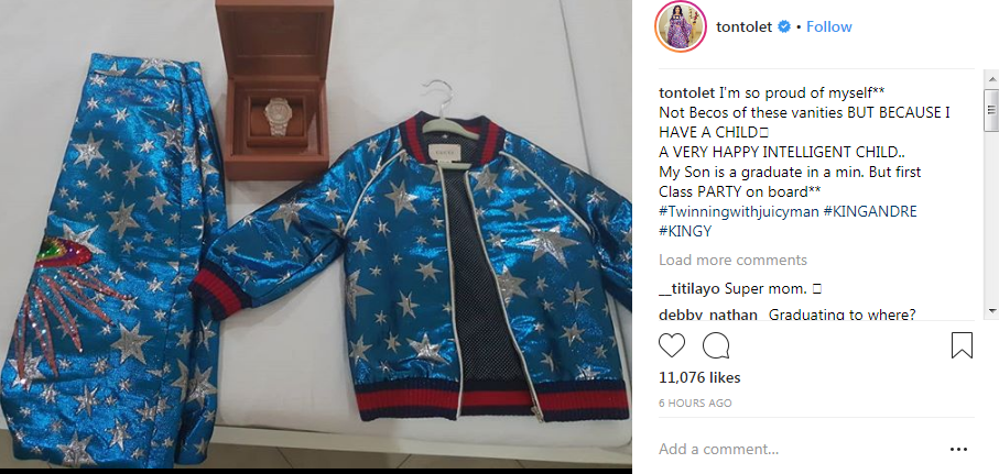 Tonto Dikeh Hails Herself For Being A Mother As She Shares Photos Of Her Son’s Track Suite