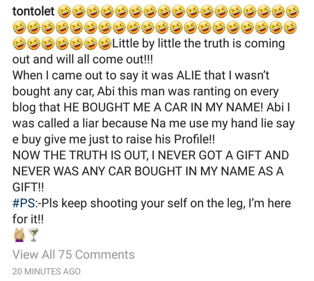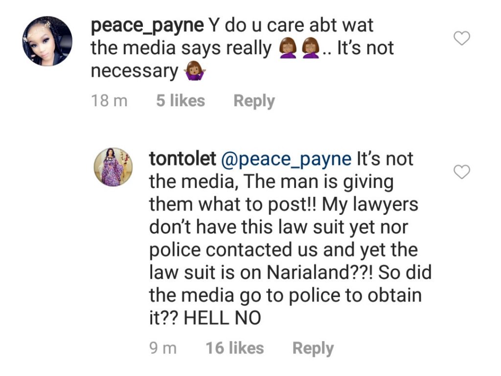 Tonto Dikeh has reacted to the allegation that she forged and illegally sold off her ex-hubby Olakunle Churchill’s N22 millikn Toyota Prado SUV.