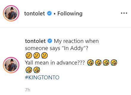 Lol! The actress shared the photo with the caption, ‘my reaction when someone says “In Addy”. Yall mean in advance?’.
