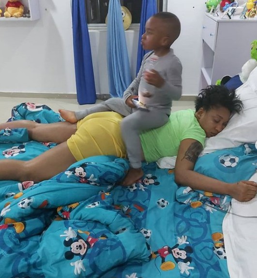 Nollywoood actress and mother of one, Tonto Dikeh shares pictures of her kid, Omodayo Churchill chilling while sitting on her back…