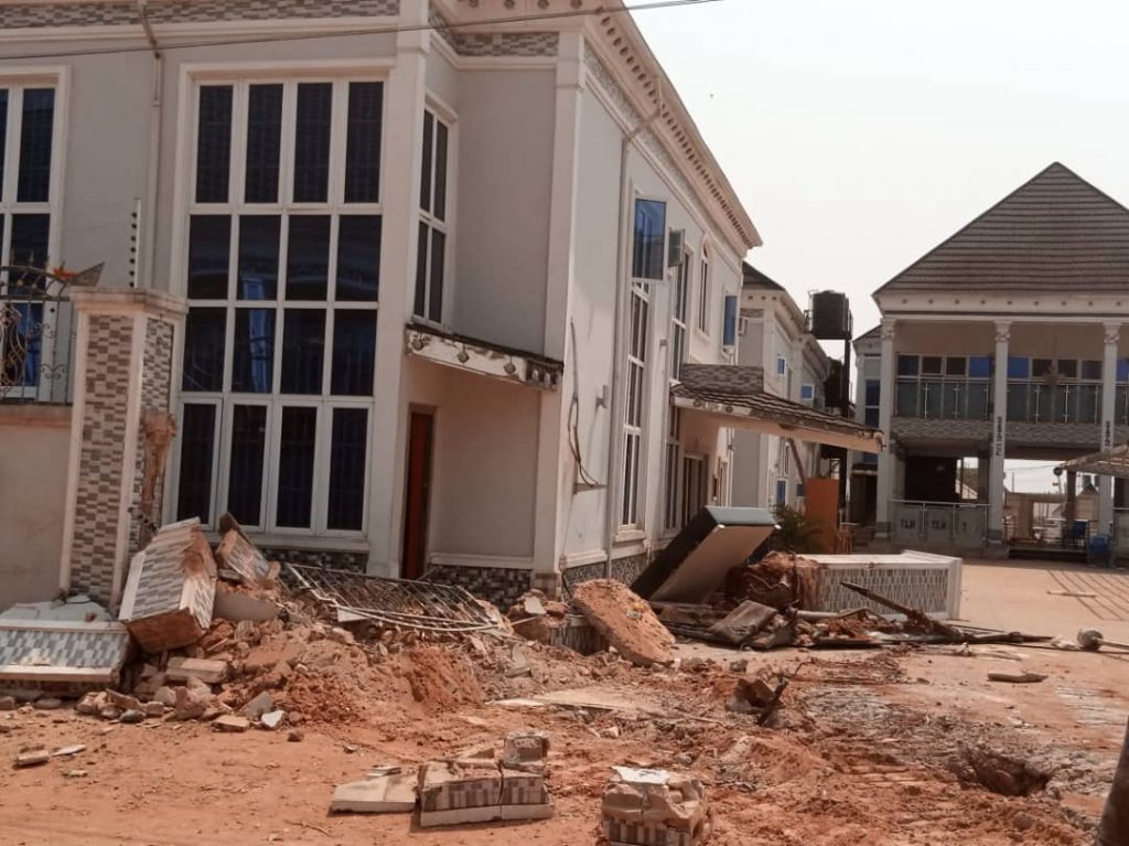 According to IgbereTV reports, the building was said to be violating building laws as the structure sits across a road in the Ugbor-Amagba axis of Oredo Local Government Area of the state.