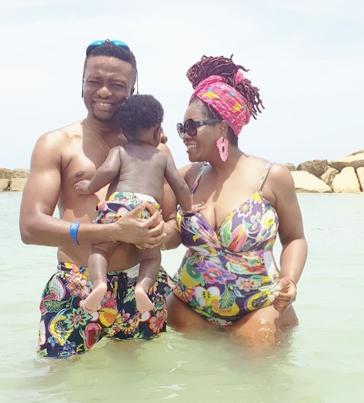 Toolz, her husband Captain Tunde Demuren, and their son are currently vacationing in Jamaica and the family was pictured wearing matching swimwears while at the beach.