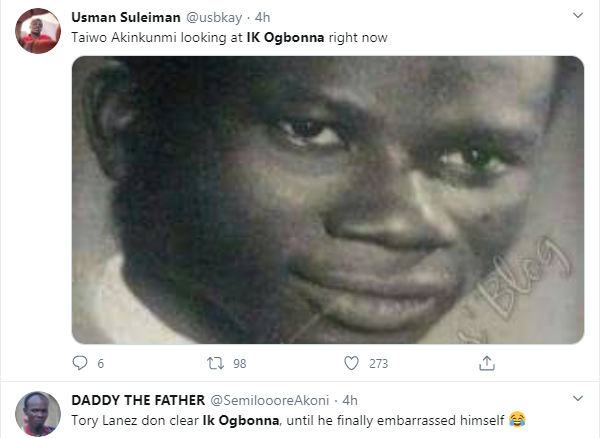Tory Lanez however noticed IK Ogbonna’s continous action last night and called him out for it.