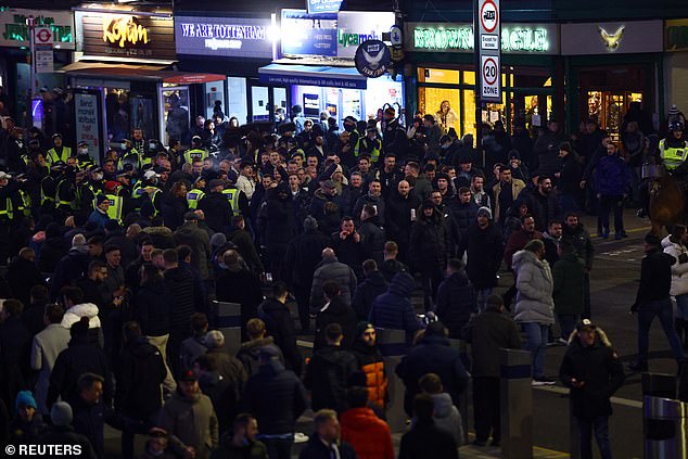 Tottenham Hotspur and West Ham United fans clashed outside the stadium before their Carabao Cup quarter-final tie.