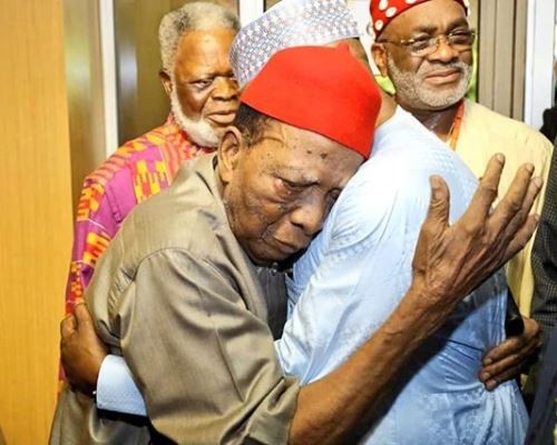 Touching Moment Prof. Ben Nwabueze Almost Cried When He Met Atiku In Enugu Today
