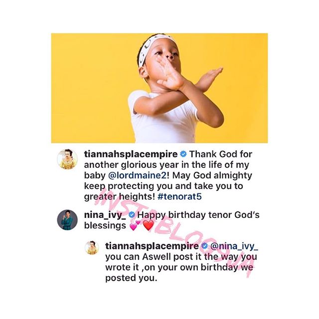 CEO of Tiannah’s Empire, Toyin Lawani chides Nina for not giving her son a birthday shoutout on her page.