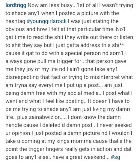 Well Lord Trigg is now claiming that it wasn’t shade thrown at his Babymama.