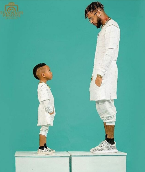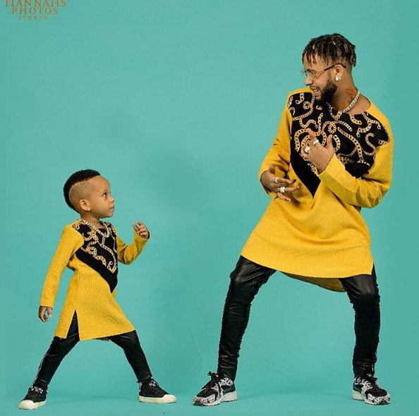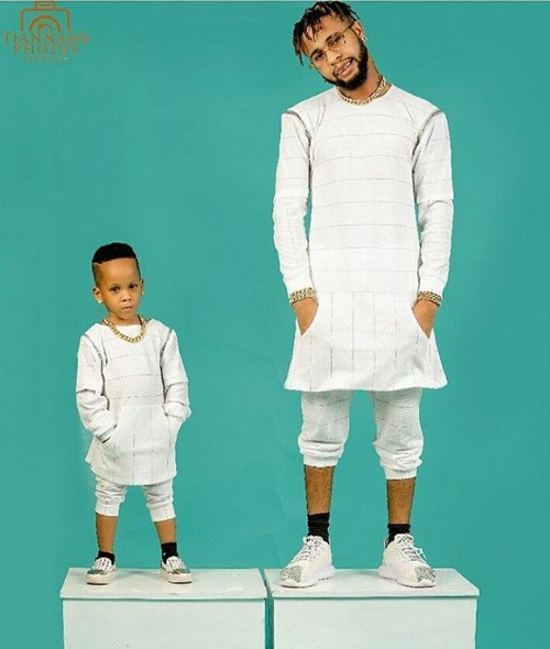 The serial entrepreneur, Toyin Lawani’s baby daddy, Lord Triggs and their son, Oluwatenola Jermaine stunned in matching outfits for a photo shoot.