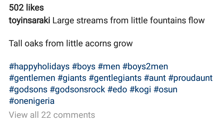 Wife of the senate president Toyin Saraki show off his grown up tall Children which are boys in new adorable photos.