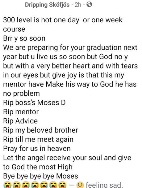 Moses Simon Gajok, a 300- level Microbiology student of the Plateau State University (PLASU) Bokkos, has been confirmed dead after falling from a building under construction.