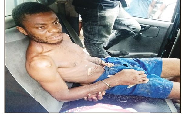 When the police came, shooting, the suspect attacked them with a machete before they arrested him, Nkoyo said.