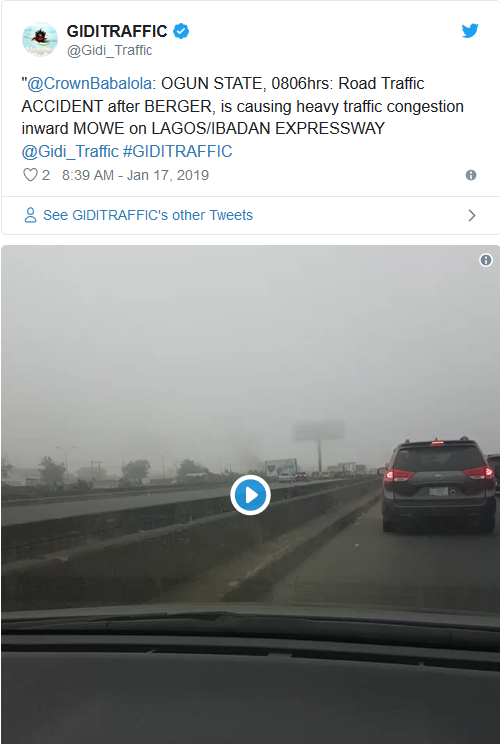 An accident has just occurred on the long bridge of Lagos-Ibadan express way causing huge traffic for people leaving Lagos.