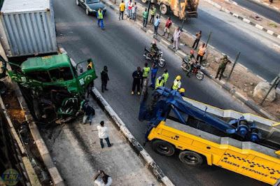 Trailer rams into a pedestrian bridge in Lagos (photos)