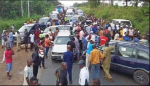 Travellers Stranded As Drivers Barricade Edo Highway Over Serial Kidnapping (Photo)