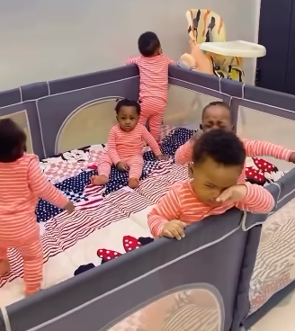 In the video, the mum could be heard complaining to her babies that they all have to stay firm in their upkeep as all the nannies she hires to cater to them leave over the tediousness of the job.