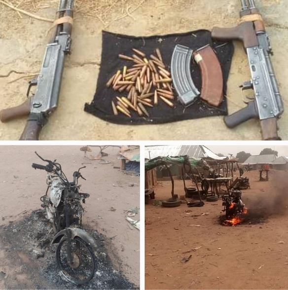 “After the battle, the troops exploited the location and recovered two AK-47 rifles, two AK-47 magazines and 57 rounds of ammunition. Six motorcycles belonging to the bandits were destroyed during the encounter.”