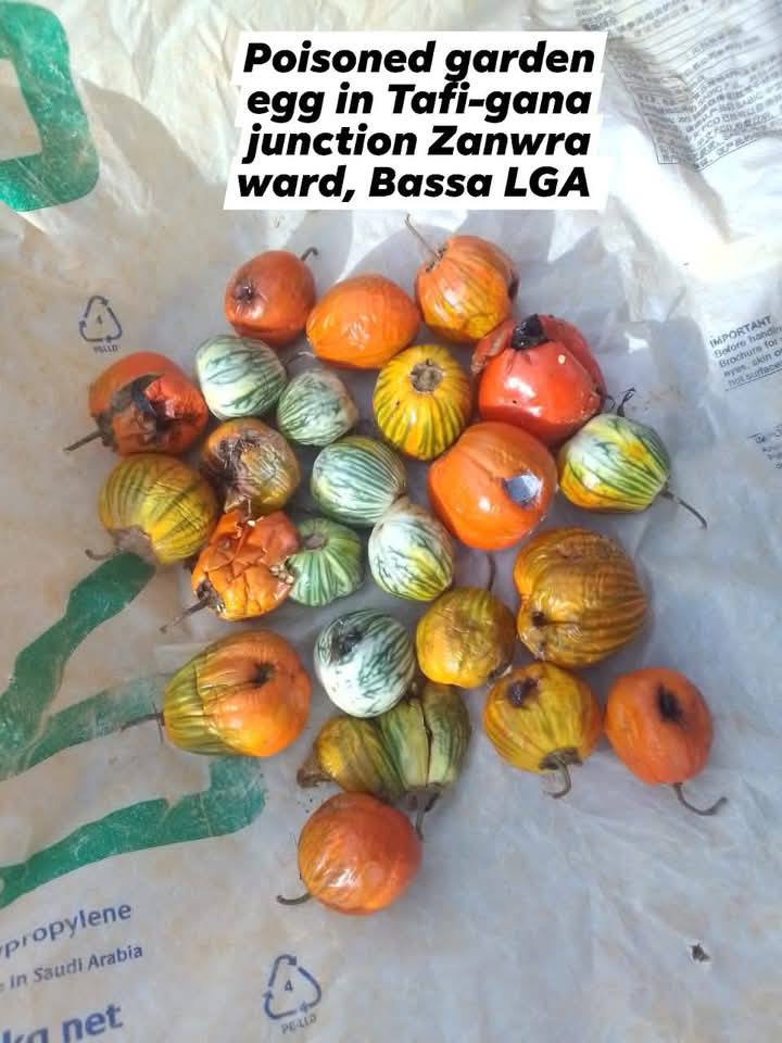 A subsequent search of the area led to the discovery of suspected poisoned tomatoes and garden eggs scattered across the field.