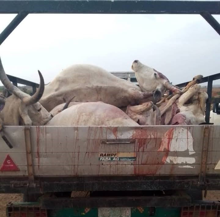 Troops under Sector 3 of OPSH, deployed to the scene following a distress call, confirmed that the cattle had already been slaughtered by the herders themselves, in a bid to salvage any usable meat.