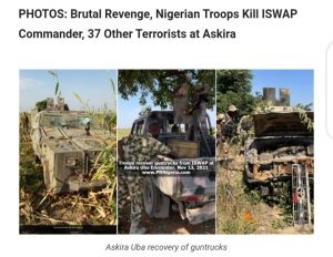 PRNigeria gathered the Nigerian troops, who had tactically retreated, regrouped, reinforced and ambushed the ISWAP Commander and eliminated his fighters at Askira Uba axis.