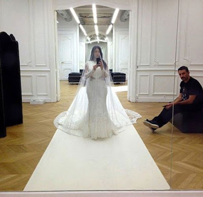 The snaps show Kim getting into in her dress and behind the scenes at the wedding.