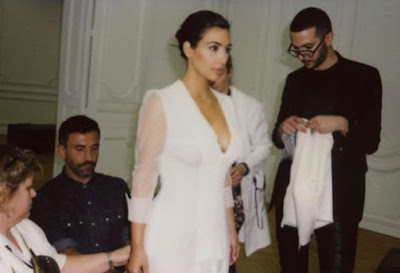 The pictures appeared to be a birthday tribute to fashion designer Riccardo Tisci, who helped design her wedding dress, but Kanye was left out of all the wedding pictures.